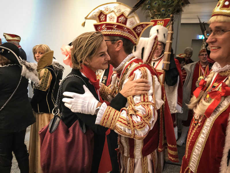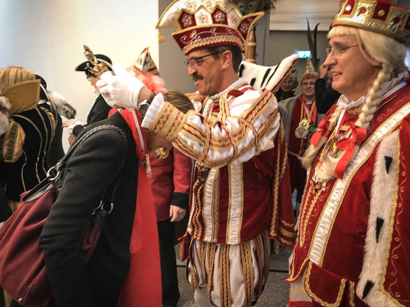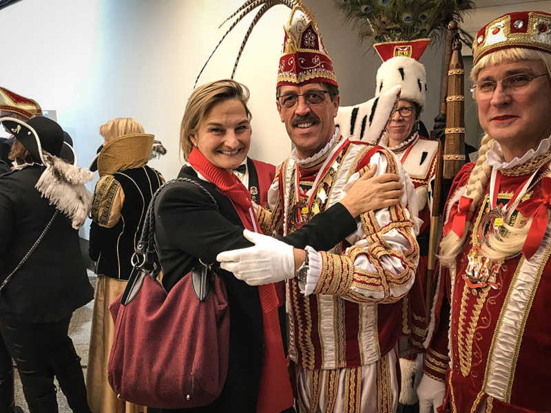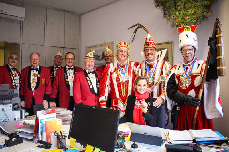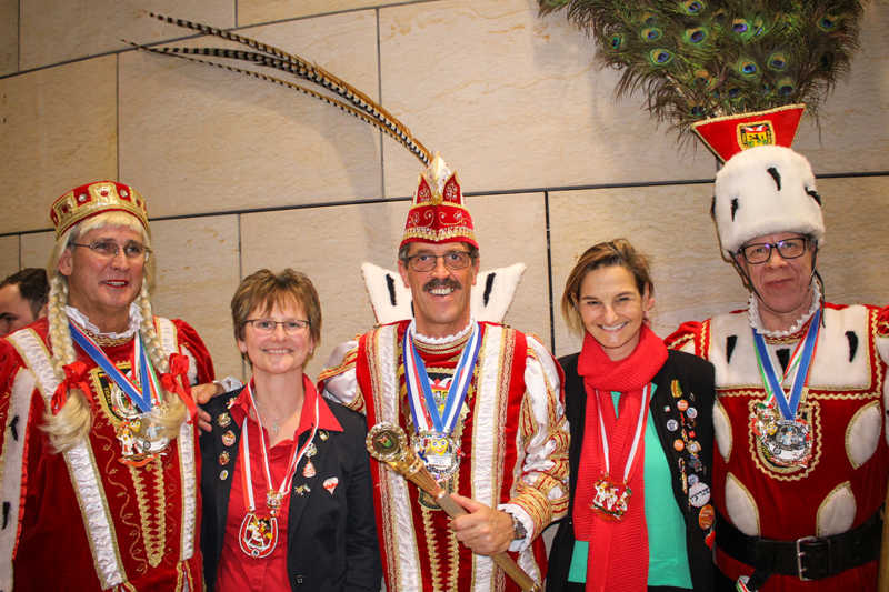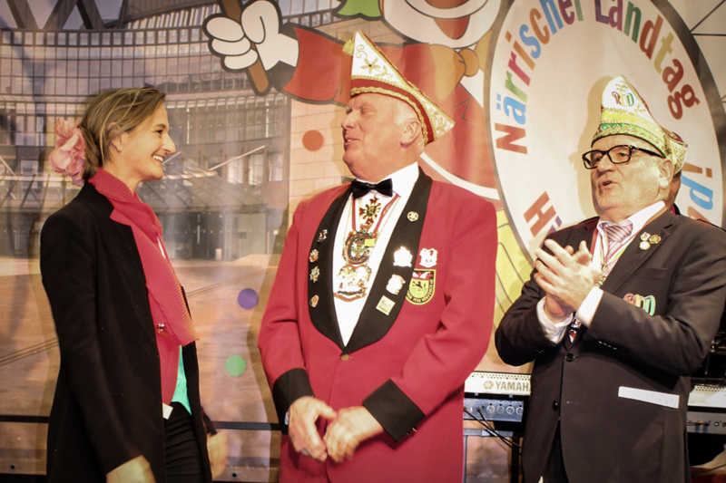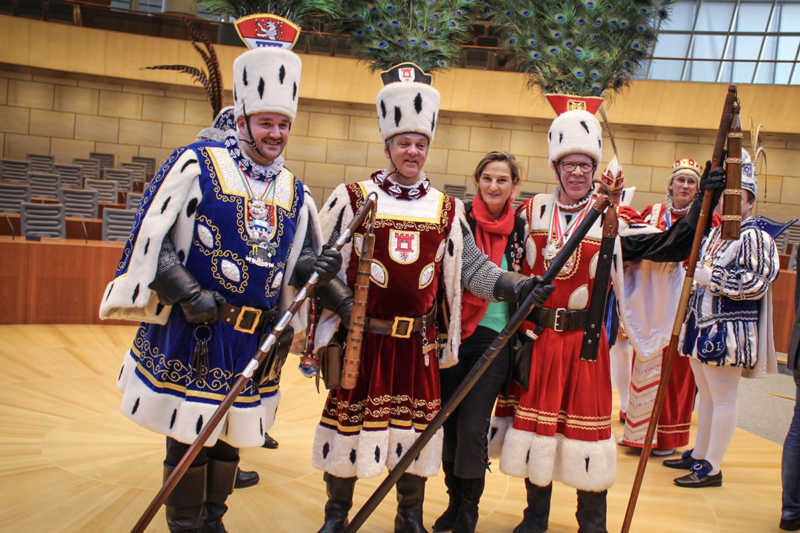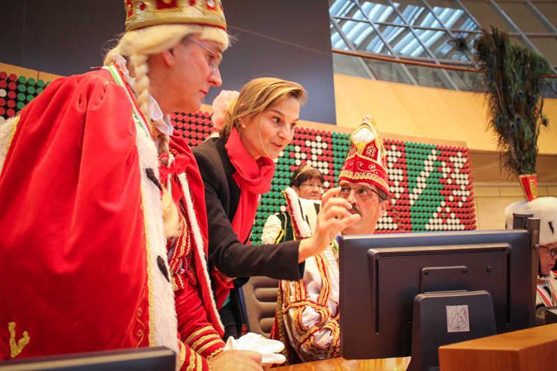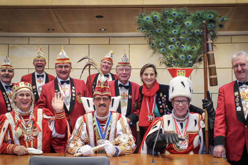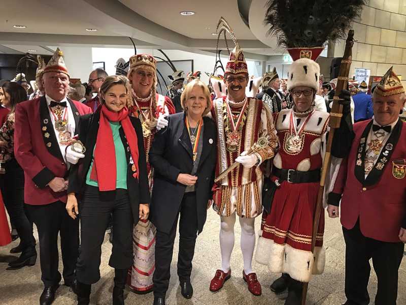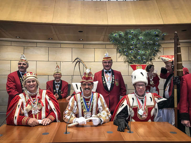Beim diesjährigen Närrischen Landtag habe ich mich riesig gefreut, das Dreigestirn der Fidele Jonge Nörvenich 1932 e.V. begrüßen zu können. Prinz Ludwig (Berau) hielt nicht nur eine Rede im Plenarsaal, sondern nahm mit Jungfrau Wilhelm (Biegel) und Bauer Bodo (Palzer) direkt auf meinem Stuhl im Plenarsaal Platz. Das Dreigestirn und die Adjutanten Matthias Rüben, Roland Palzer und Heinrich Simon sowie Ralf Liesenfeld, Burkhart Tischel und Peer Degen habe ich gerne persönlich durch den Landtag geführt. Wir haben alle die tolle Atmosphäre, die die vielen Narren verbreiteten, genossen. Eine besondere Freude machten Landtagspräsident André Kuper und der gesamte Närrische Landtag dem Adjutanten des Bauern Roland Palzer mit einem Ständchen zum 65. Geburtstag. Ich bin sicher, dass er diesen Geburtstag nicht mehr vergessen wird!
