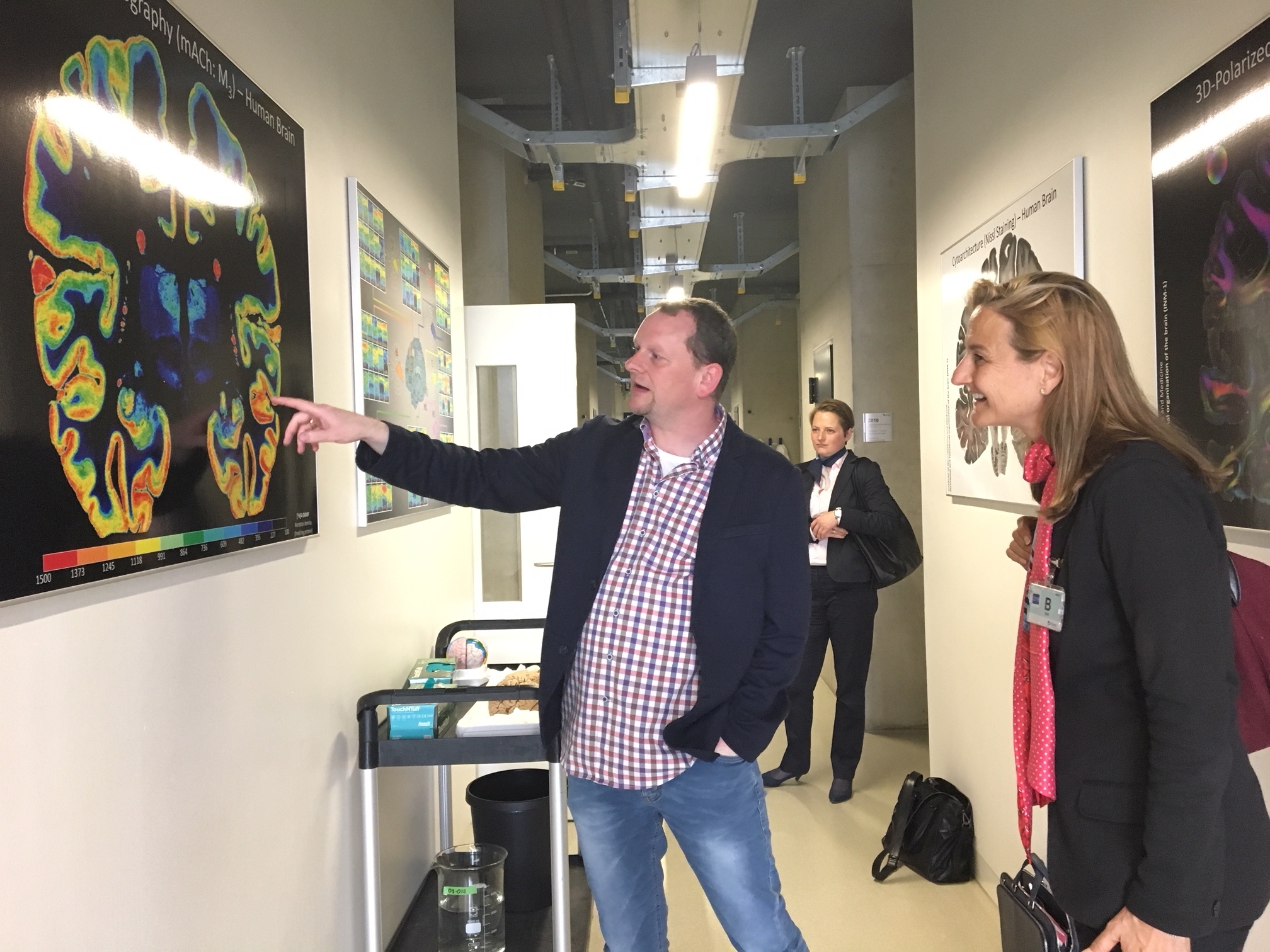 Neben den großen Forschungsthemen des Zentrums stand auch die Vereinbarkeit von Familie und Beruf im Forschungszentrum auf dem Programm: Sabrina Schwarz vom Büro für Chancengleichheit (BfC) stellte die zahlreichen Initiativen und Maßnahmen für Familien vor. Beispielhaft sind hier nicht nur die Vereinbarkeit von Beruf und Kindern. Durch die FZJ-angegliederte Kindertagesstätte „Kleine Füchse“ werden verschiedene Möglichkeiten der Kinderbetreuung auf dem Campus, Feriencamps geboten aber auch Homeoffice und flexibles Arbeiten für berufstätige Eltern und auch die Unterstützung für pflegende Angehörige. Ich finde es großartig, dass sich das Forschungszentrum auch auf diesem Gebiet modern und als Vorreiter zeigt. Mit Dr. Ruth Laengner, Wissenschaftlerin im Forschungszentrum und Vorstandsmitglied der Elterninitiative „Kleine Füchse“, und Susann Köhler, Leiterin der Kleinen Füchse, konnte ich einen Blick auf die Fortschritte beim Bau der neuen Kita im Forschungszentrum werfen. Diese soll zu Beginn des neuen Kindergartenjahrs im Spätsommer 2018 ihren Betrieb aufnehmen.