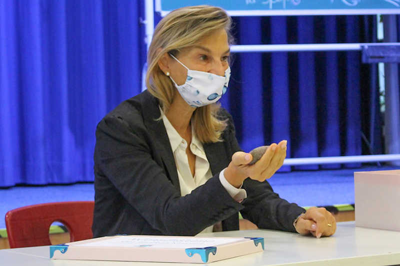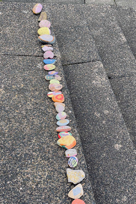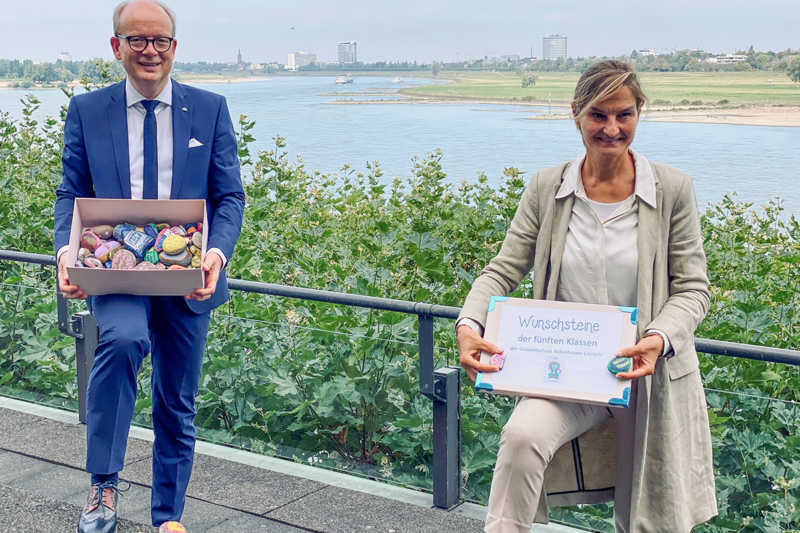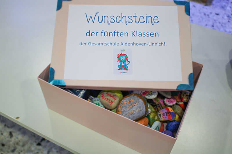Übergabe von bunt bemalten Wunschsteinen durch die 5. Klassen der Gesamtschule Aldenhoven/Linnich