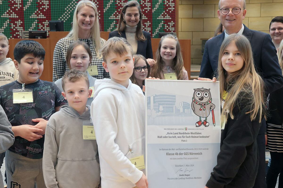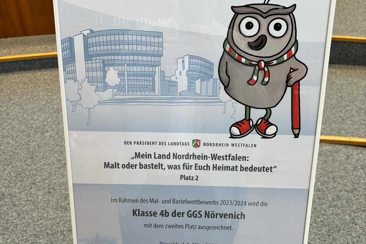 Was für ein wunderbares Ergebnis! 130 vierte Klassen haben sich NRW-weit am Mal- und Bastelwettbewerb des Landtages beteiligt und die GGSNörvenich hat den 2. Platz gemacht!