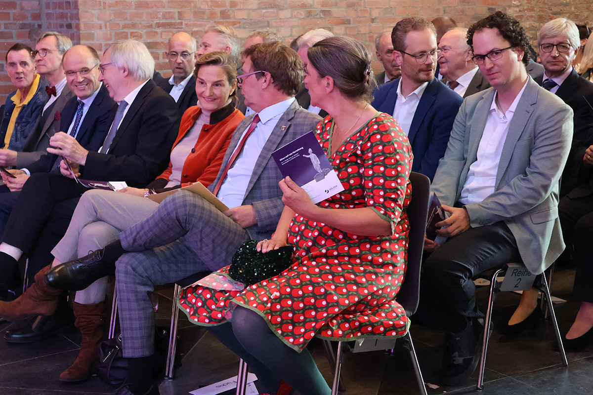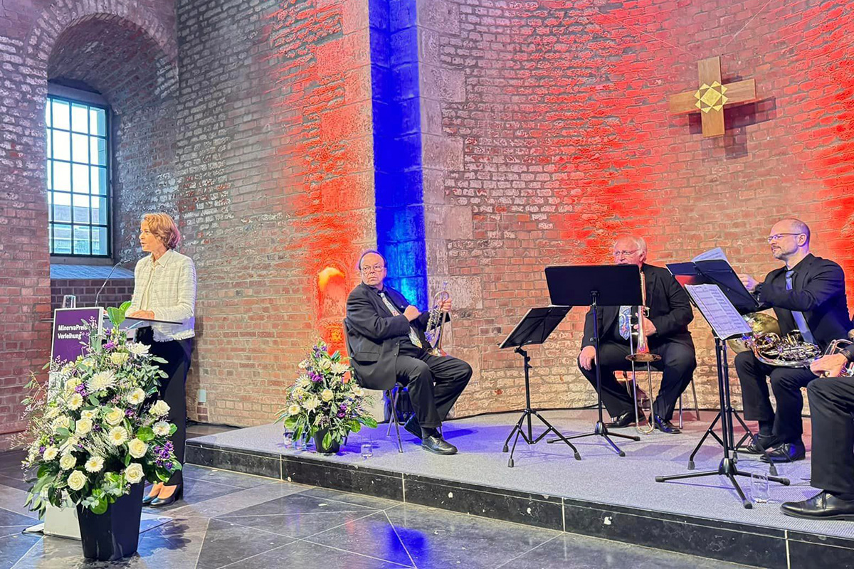 Prof. Astrid Lambrecht, Vorsitzende des Fördervereins Museum und Vorstandsvorsitzende des Forschungszentrums Jülich, zitierte zur Verleihung des MinervaPreises in der Schlosskapelle der Zitadelle Jülich Leonardo da Vinci: „Fähige Menschen warten selten darauf, dass Dinge ihnen zustießen. Sie gingen hinaus und stießen den Dingen zu.“ Sie stellte fest, dass Isabel Pfeiffer-Poensgen, die erste Ministerin des neuen Kultur- und Wissenschaftsministeriums, eben diesen Grundsatz mit Leben füllen würde. Als Vorreiterin, die gezeigt habe, wie eng Kultur und Wissenschaft verbunden sind, wurde sie als Preisträgerin 2024 ausgewählt. Mit dem Minerva-Preis ehrt der Förderverein Museum Zitadelle seit 30 Jahren Persönlichkeiten, die sich an der Schnittstelle zwischen Kultur und Wissenschaft Verdienste erworben haben.